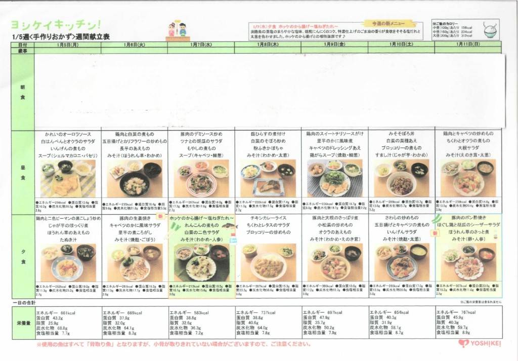 給食メニュー 献立表の公開 1/5~1/18