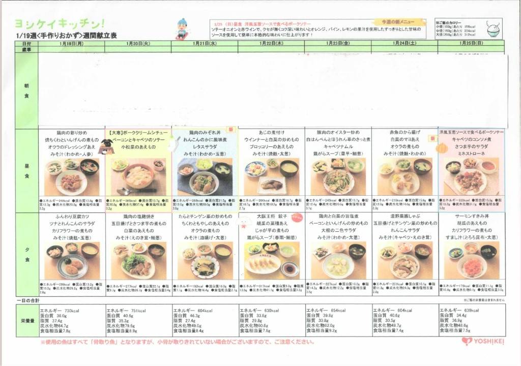 給食メニュー 献立表の公開 1/19~1/25
