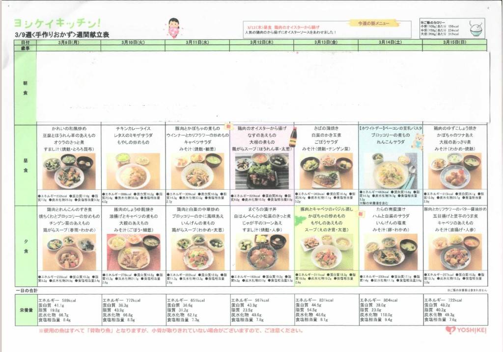 給食メニュー 献立表の公開 3/9~3/22