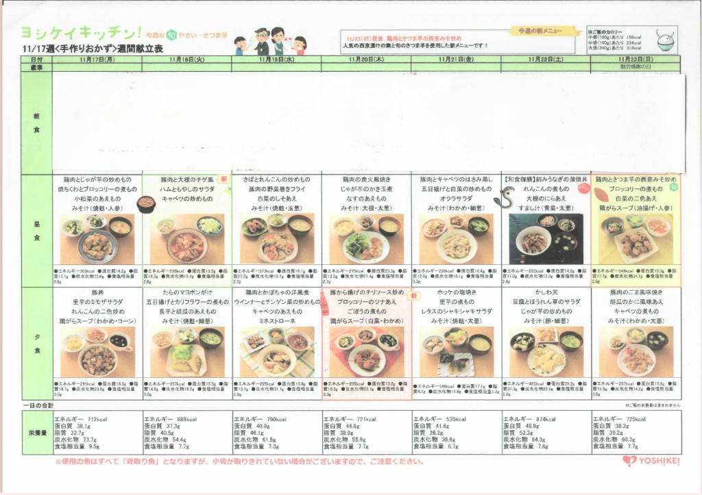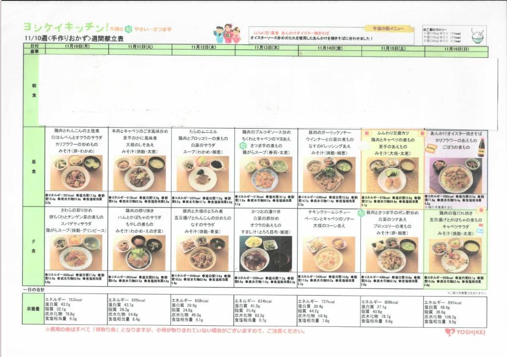 2025 年 10 月 21 日公開 給食メニュー 献立表の公開 11/3~11/9 #新着情報 #給食メニュー #ヨシケイキッチン #202509 11/3~11/9の献立表を公開させていただきます。