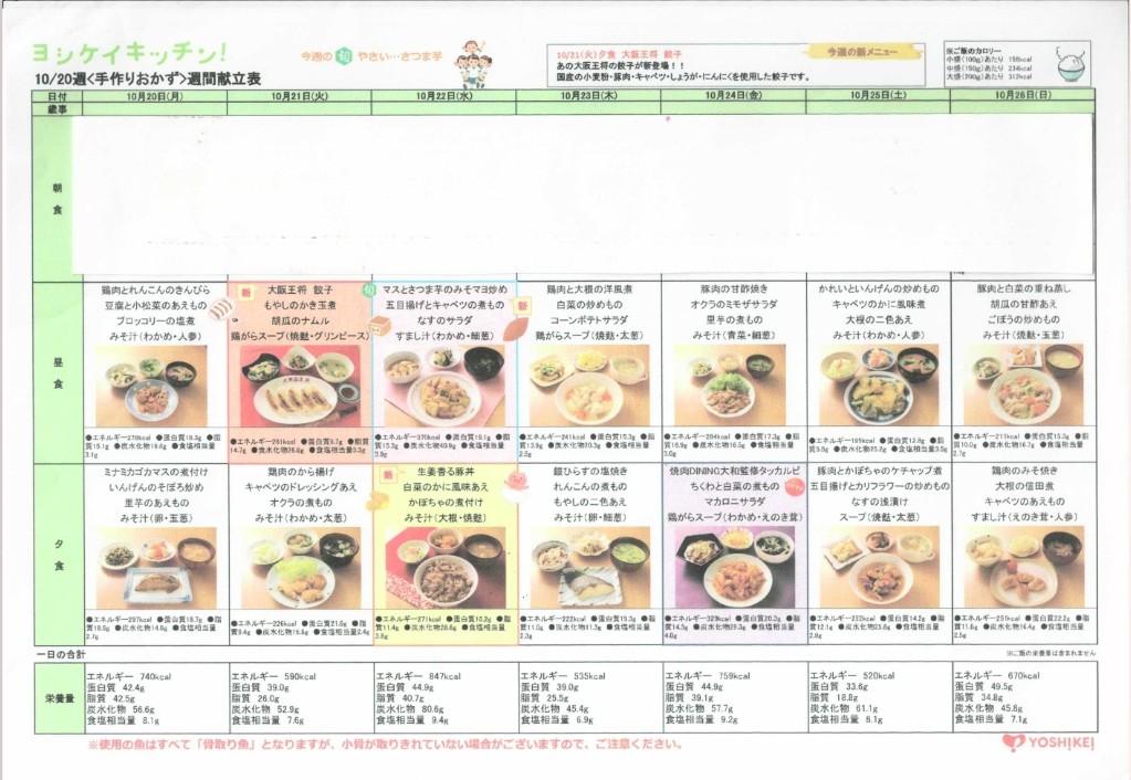 2025 年 10 月 10 日公開 給食メニュー 献立表の公開 10/20~10/26 #新着情報 #給食メニュー #ヨシケイキッチン #202509 10/20~10/26の献立表を公開させていただきます。