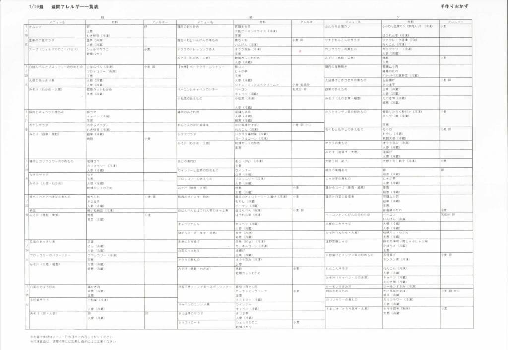 1/19~1/125の献立表を公開させていただきます。
